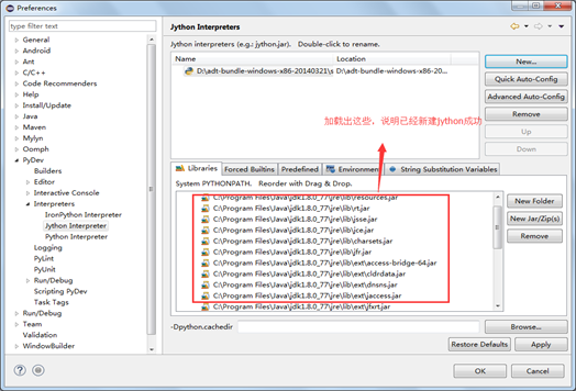 加載完成後,點擊Apply-OK,即完成Jython的環境配置。