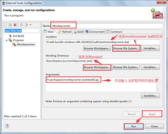 5.Eclipse中運行Monkeyrunner腳本