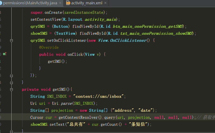 我們這裡以讀取短信息為例講解整個權限的使用: