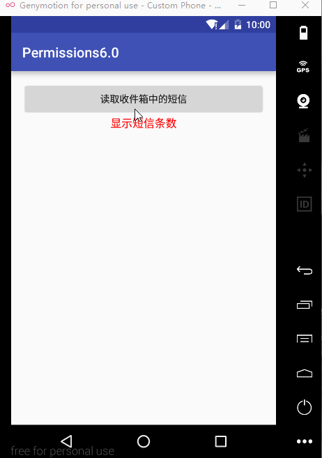 也是可以的,0條信息是因為我的模擬機上沒短信,這個數字多少和我們沒有關系。假如targetSdkVersion 為23呢,來看看結果: