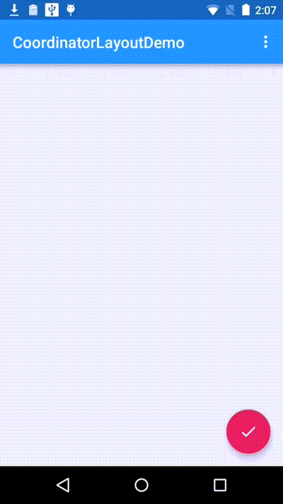 FloatingActionButton是最簡單的使用CoordinatorLayout的例子,FloatingActionButton默認使用FloatingActionButton.Behavior。