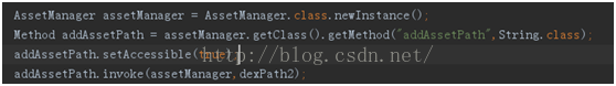 該方法接收的參數是插件apk的路徑,內部會調用native方法把插件apk對應的資源加載進來。然而該方法是hide的,我們不能直接調用,所有只能通過反射。