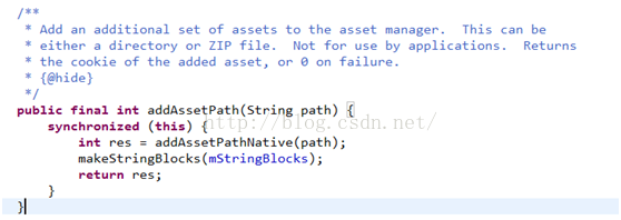 資源的加載最後是通過AssetManager內的一個方法addAssetPath(String path)