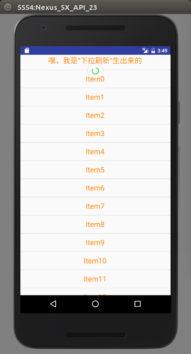 到這裡,就實現了下拉刷新的功能,具體的Adapter的實現,分隔線的加入,請看我前面的兩篇文章,或者是看後面附帶的源碼