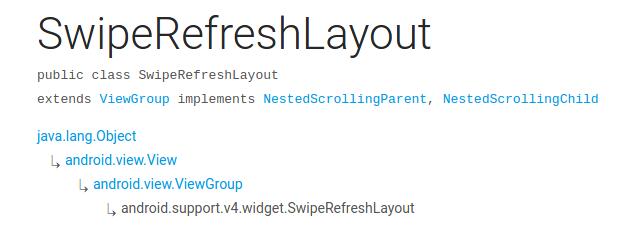 在google的android.support.v4包中,提供一個SwipeRefreshLayout方法, 用於實現下拉刷新,實現的過程也非常簡單, 那我們先來看一下SwipeRefreshLayout是什麼東西,其實從名字上來看,它就是一個刷新布局,我們來看它的繼承結構圖: