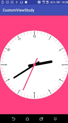 本文主要講解的是如何自定義一個時間鐘表,通過簡單的練習可以簡單學習Android當中自定義view的一些常用繪圖技巧,優化android繪圖操作。言歸正傳,首先看下我們需要實現的效果: