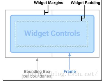 Figure 2. Widgets generally have margins between the bounding box and frame,and padding between the frame and widget control