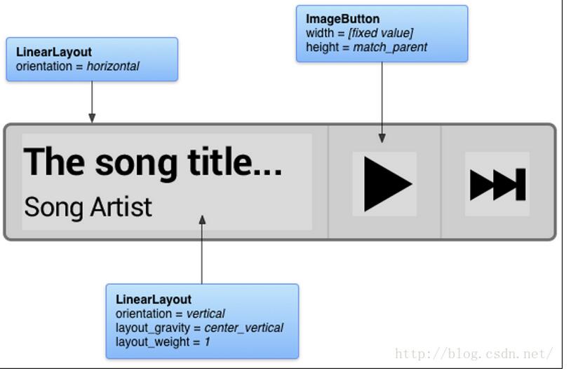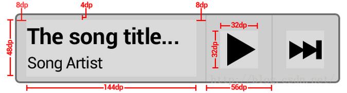 你最小的高度就應該為你的兩個文本控件的高度+文本之間的margin高度和padding高度。你的最小寬度就應該為播放按鈕最短寬度+ 下一曲按鈕的最短寬度 + 文本的最短寬度(比如說最長10個字符)+水平的一些margin和padding距離