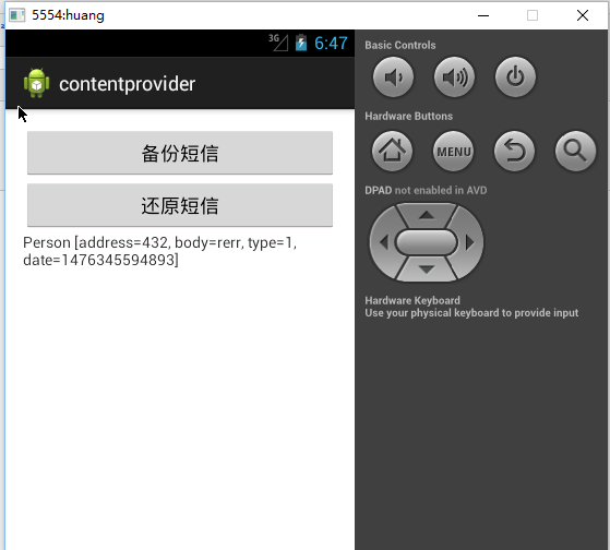效果演示,我的虛擬機中只存了一條短信: