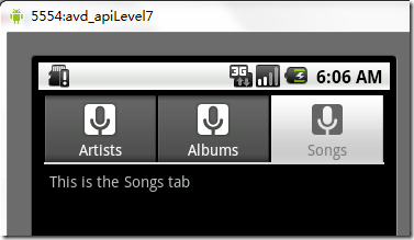 spec = tabHost.newTabSpec("songs").setIndicator("Songs",