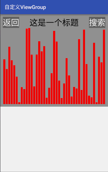 <?xml version="1.0" encoding="utf-8"?> <com.sanhuimusic.mycustomview.view.CustomViewGroup android:background="#999999" xmlns:android="http://schemas.android.com/apk/res/android" xmlns:custom="http://schemas.android.com/apk/res-auto" android:id="@+id/customViewGroup" android:layout_width="match_parent" android:layout_height="match_parent"> <com.sanhuimusic.mycustomview.view.CompositeViews android:background="#999999" android:id="@+id/topBar" android:layout_width="wrap_content" android:layout_height="wrap_content" custom:titleText="@string/titleText" custom:titleColor="#000000" custom:titleTextSize="@dimen/titleTextSize" custom:titleBackground="#999999" custom:leftText="@string/leftText" custom:leftTextColor="#FFFFFF" custom:leftBackground="#666666" custom:leftTextSize="@dimen/leftTextSize" custom:rightText="@string/rightText" custom:rightTextColor="#FFFFFF" custom:rightBackground="#666666" custom:rightTextSize="@dimen/rightTextSize" /> <com.sanhuimusic.mycustomview.view.AudioBar android:layout_width="match_parent" android:layout_height="wrap_content" /> </com.sanhuimusic.mycustomview.view.CustomViewGroup>