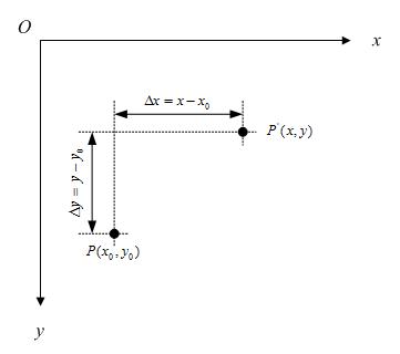 下面我們來看看四種變換的具體情形。由於所有的圖形都是有點組成,因此我們只需要考察一個點相關變換即可。