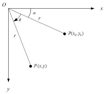後的情形,同時假定P點離坐標原點的距離為r,如下圖: