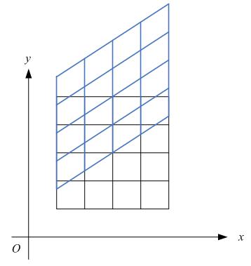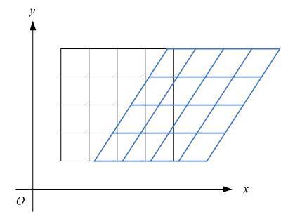 下圖各點的x坐標保持不變,但其y坐標則按比例發生了平移。這種情況叫垂直錯切。