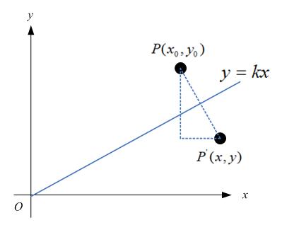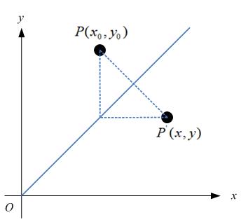 需要特別注意:在實際編程中,我們知道屏幕的y坐標的正向和數學中y坐標的正向剛好是相反的,所以在數學上y = x和屏幕上的y = -x才是真正的同一個東西,反之亦然。也就是說,如果要使圖片在屏幕上看起來像按照數學意義上y = x對稱,那麼需使用這種轉換: