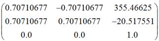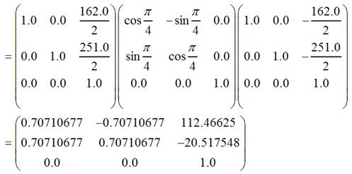 這和下面這個矩陣(圍繞圖像中心順時針旋轉45度)其實是一樣的:
