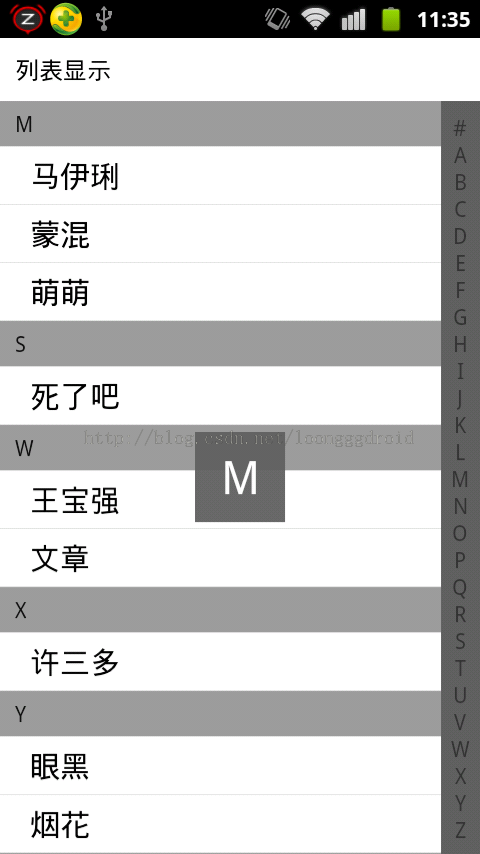 Android手機聯系人帶字母索引的快速查找
