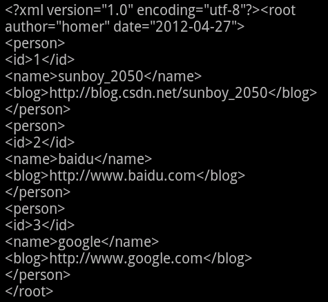 請參見前文Android 創建與解析XML(二)—— Dom方式 【4、Person類】