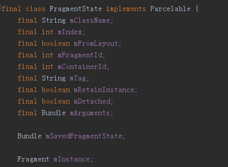 這裡要說說 FragmentState 這個類,它是用來保存 Fragment 的相關狀態的。