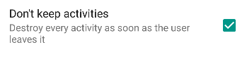 這個主要就是 Activity 幫我們在作相關的恢復狀態的時候出現的問題。在設置中將不保留後台進程打開,方便產生對應的情況: