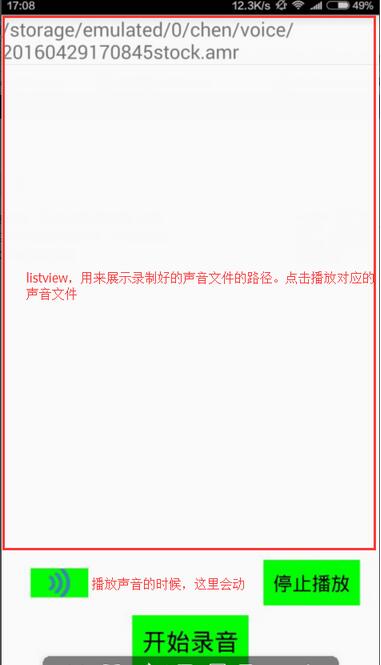 3、沒有做刪除某個聲音文件的操作,但是測試的時候實現了功能,需要用到的話,在MainActivity—>onItemClick中的TODO中有詳細說明;