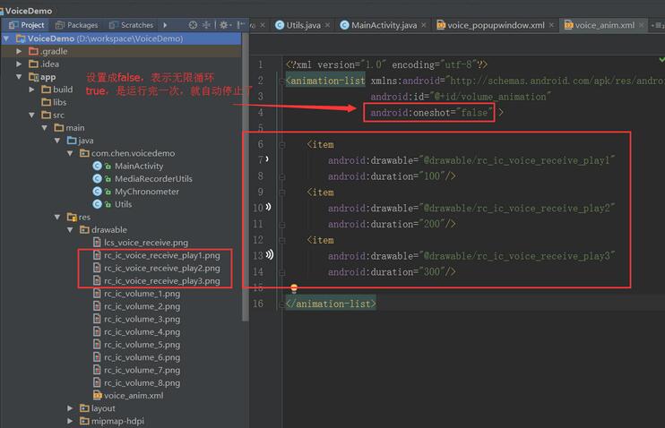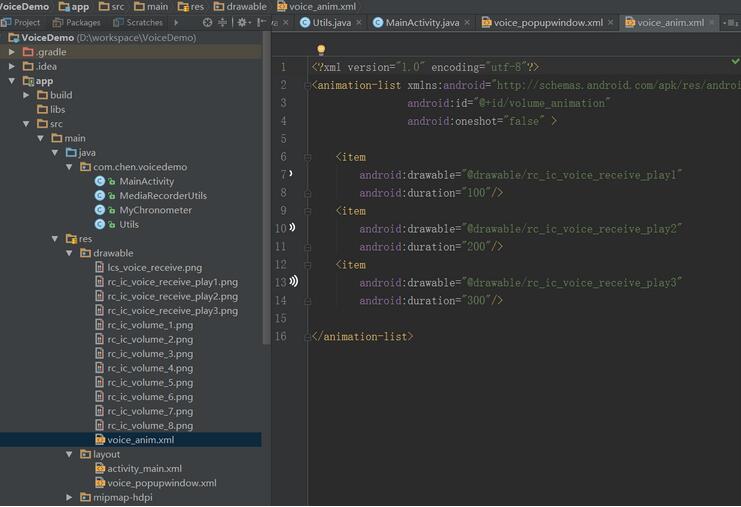 8、還有一個動畫布局,播放聲音的時候,有個動畫效果
