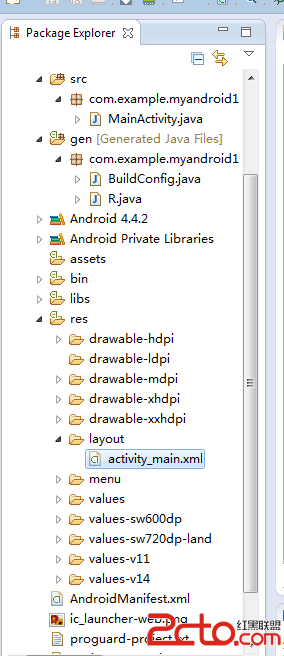 項目包 src --java源代碼 gen文件夾 -- 資源文件,修改後自動生成 ---R.java