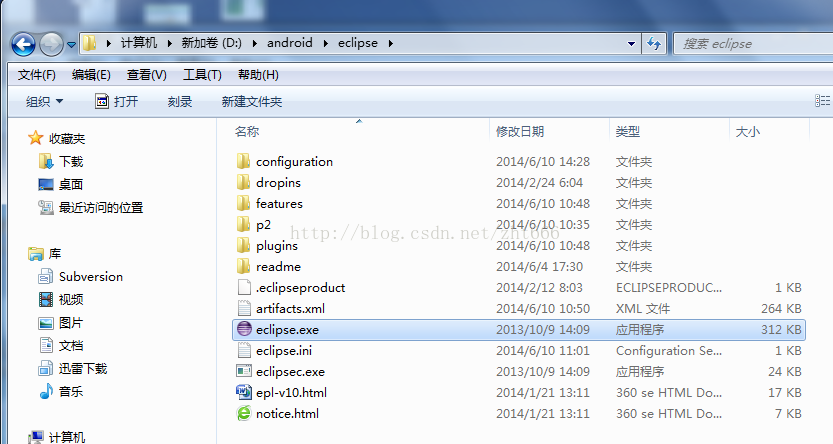 Eclipse下載:http://www.jb51.net/softs/75615.html,我下載的eclipse-java-kepler-SR2-win32.zip,解壓到自己的目錄下即可使用,無需安裝。雙擊eclipse.exe即可運行。