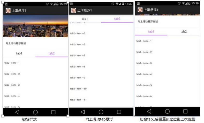 a 上面的demo只是實現了向上滑動的效果,其實有很大的局限性,兩個tab的item布局要一致,才能自由切換,其次是兩個tab不能左右滑動