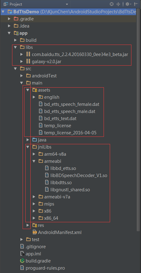 百度語音官方的Demo是在Eclipse環境下編寫的,而在Android Studio中則有點小區別,下面請看百度語音合成使用詳細步驟(一步一步操作不要跳躍心急吃不了熱豆腐):