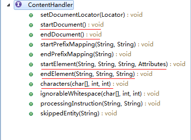 SAX(Simple API for XML)解析器是一種基於事件的解析器,它的核心是事件處理模式,主要是圍繞著事件源以及事件處理器來工作的。當事件源產生事件後,調用事件處理器相應的處理方法,一個事件就可以得到處理。在事件源調用事件處理器中特定方法的時候,還要傳遞給事件處理器相應事件的狀態信息,這樣事件處理器才能夠根據提供的事件信息來決定自己的行為。