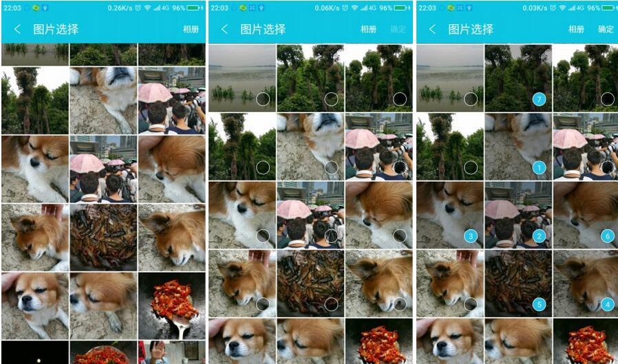 像新浪微博中的圖片選擇,不會出現數字,而是出現一個勾,選中的時候這個勾還有動畫效果。