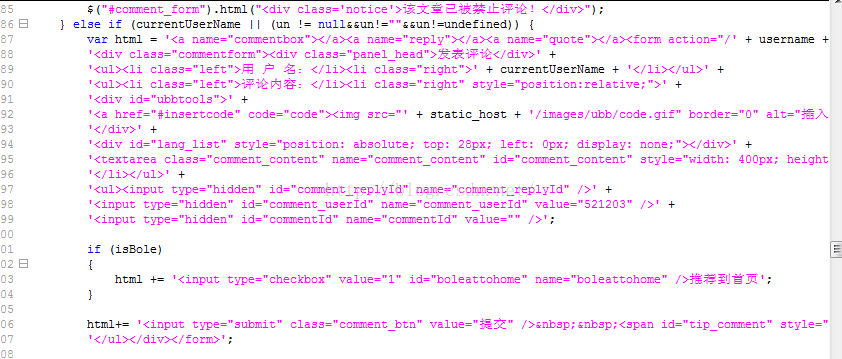 能看出什麼嗎?我唯一看出來的就是表單在div id=comment_form中,可是提交的表單項去哪裡呢?答案就是CSDN寫在JS裡面了。下面我們打開其處理comment_form的JS。