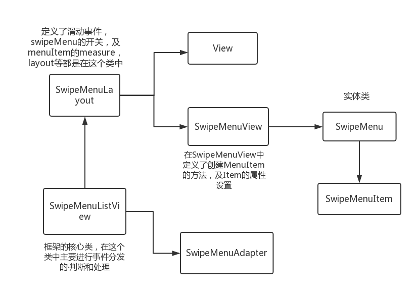 SwipeMenu、SwipeMenuItem是實體類,定義了屬性和setter、getter方法,看下就行。基本上源碼的注釋很清楚。