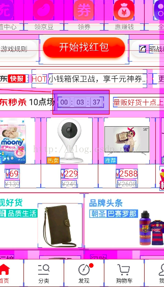 今天給大家帶來的是僅僅使用一個TextView實現一個高仿京東、淘寶、唯品會等各種電商APP的活動倒計時。最近公司一直加班也沒來得及時間去整理,今天難得休息想把這個分享給大家,只求共同學習,以及自己後續的復習。為什麼會想到使用一個TextView來實現呢?因為最近公司在做一些優化的工作,其中就有一個倒計時樣式,原來開發的這個控件的同事使用了多個TextView拼接在一起的,實現的代碼冗余比較大,故此項目經理就說:小宏這個就交給你來優化了,並且還要保證有一定的擴展性,當時就懵逼了。不知道從何處開始優化。然後我就查看京東,餓了麼,唯品會等各個APP的倒計時,並在開發者中打開層級界面顯示,發現他們都有一個共同的特點就是一個View,沒有使用多個TextView來拼接。相信大家都知道僅僅使用一個TextView比使用多個TextView拼接去實現的優勢吧,下面不妨來看看幾個界面就知道了。