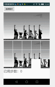 大體思路:將大圖切割成各個小方塊,用數組記錄每個小方塊的信息,用GridLayout來顯示各個小方塊,並且將某個小方塊標記為空白方塊(空白方塊可以和相鄰方塊進行交換),在GridLayout上的各個小方塊上增加點擊事件和在整個屏幕上添加手勢事件,每次點擊或者有手勢時,判斷小方塊是否能移動,最後在游戲勝利時彈出勝利提示。