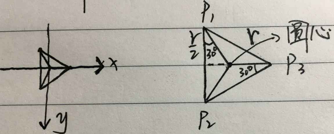 相信這張圖拿出來了,結合正弦、余弦函數,p1,p2,p3的坐標也就出來了。