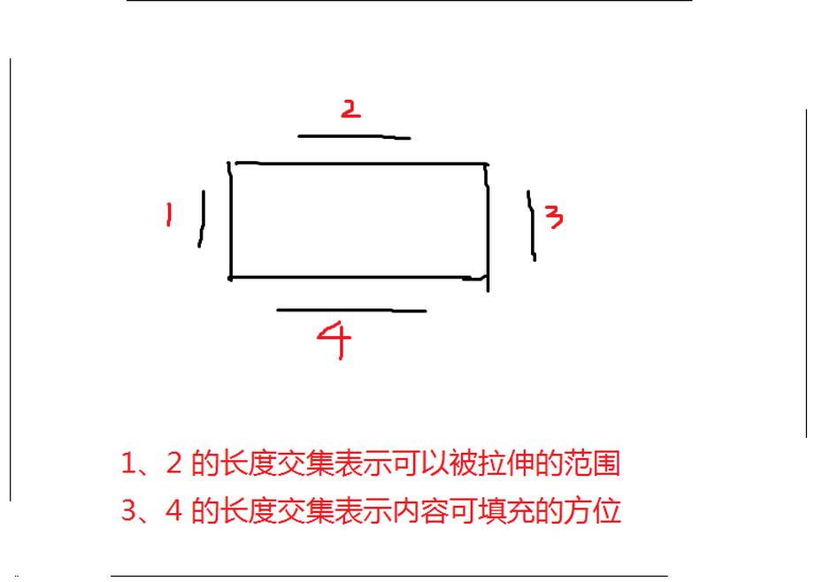 圖中3、4方向黑線長度交集表示內容可以填充的區域