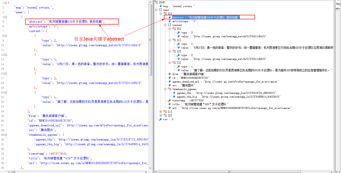 1、問題描述首先,需要解析的Json數據類似於下面的格式,但是包含了Java關鍵字abstract:{ ret: 0, msg: "