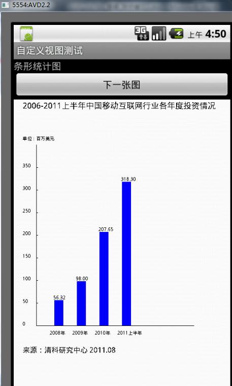 在onDraw方法中,初始化了一個畫筆對象myPaint,設置畫筆顏色,還有文字大小,填充等屬性。再利用本方法傳入的參數canvas畫布完成一幅條形統計圖的繪制。具體代碼如下: