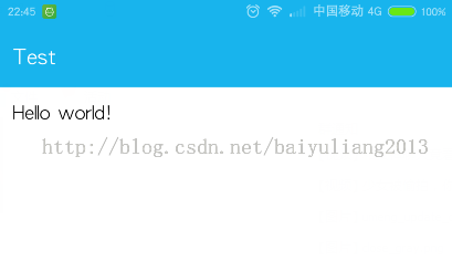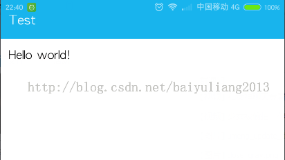 貌似已經達到效果了,但仔細觀察,好像標題欄被提上去了,就是說APP界面全屏了,狀態了蓋在了APP上,恩,這並非我們想要的效果,那如何將界面從狀態欄下部開始呢,只需要在Activity的布局文件最外層控件加上一個屬性: