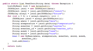 在安卓環境下解析JSON數據有兩種方式,一種是自定義方法根據數據結構分層解析,另一種是用開源框架。自定義方法進行解析時,又可以分為對象解析、數組解析、綜合解析。對象解析較為簡單,先創建JSON對象,用對象的GetXxx()的方法獲取對應的值,然後存儲在集合中,即獲取到JSON數據。數組解析先通過JsonArray對象獲取JSON對象,然後參照對象解析的方法。綜合解析則是在上述兩種解析基礎上完成的。根據JSON數據的結構,按照順序一次獲取JSON對象和JsonArray對象知道獲取到所需數據。用開源框架進行解析基本原理類似,只不過需要提前進行導包,並創建一個方法類來調用包裡的內容。
