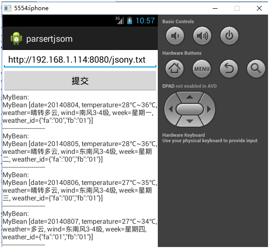 為更好的演示效果,本文最終做出的案例是用安卓設備從Tomcat服務器上獲取到JSON數據和XML數據,然後進行解析,將解析後的結果展示在安卓設備上。