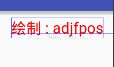 圖中藍色的線即為baseline,可以看出他既不是頂部坐標也不是底部坐標,那麼當我們繪制文字的時候肯定是希望能把文字繪制在正中間.這時候就要引入paint.getTextBound()方法了 getTextBounds(String text, int start, int end, Rect bounds),傳入一個Rect對象,調用此方法之後則會填充這個rect對象,而填充的內容就是所繪制的文字相對於baseline的偏移坐標,將這個Rect加上baseline的坐標,繪制後是這樣的: