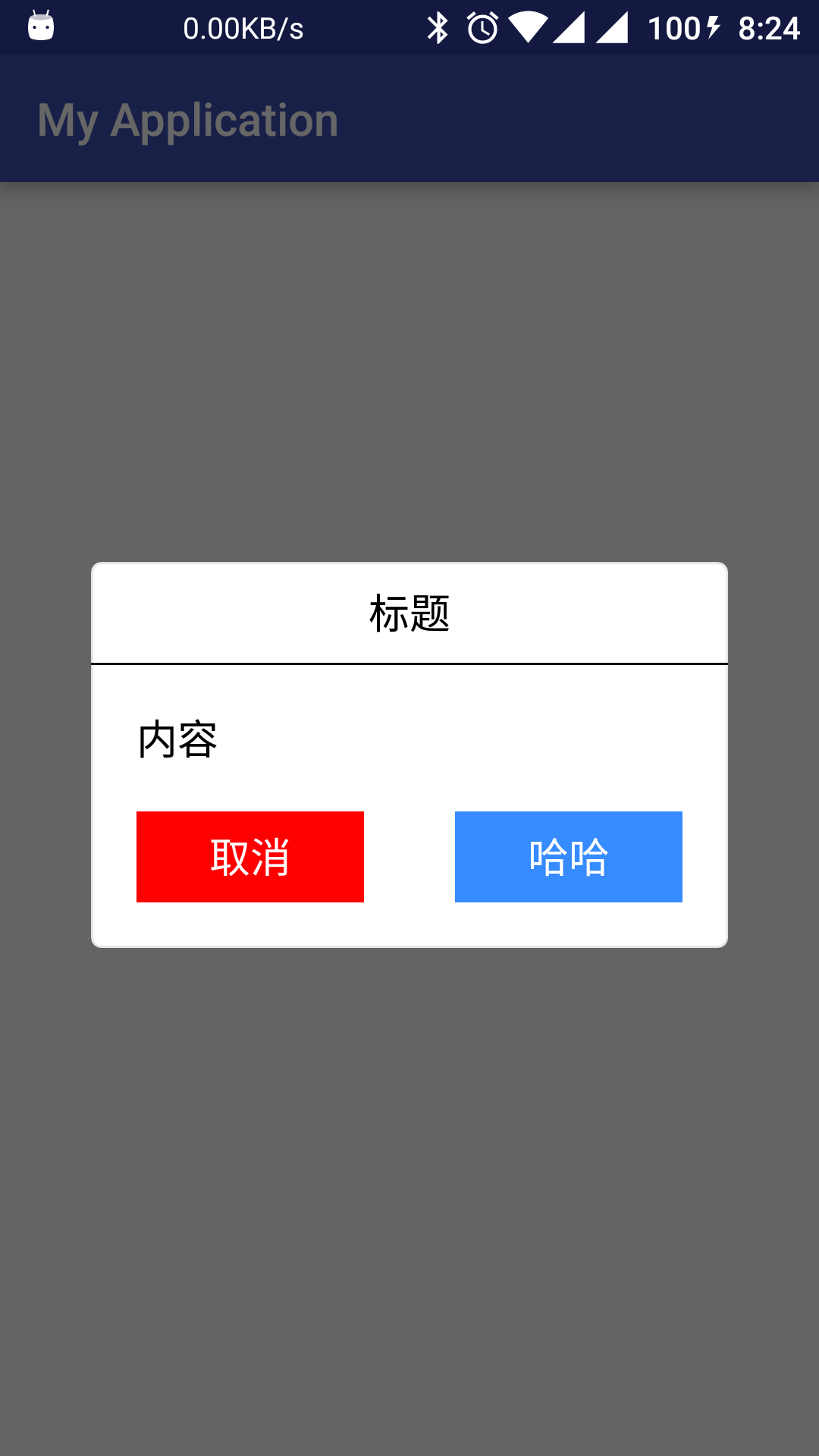 很丑有木有,不過沒關系,這裡我們只是展示它的用法,如何把對話框做的好看一點就看各位的發揮了。可以看出自定義的BaseDialog的使用方法與Andorid自身的AlertDialog基本一致,都是通過其Builder類進行對象的構建。