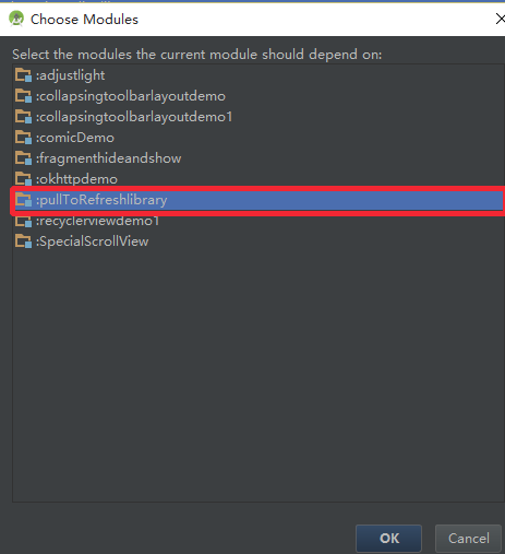 與一些其他的第三方庫不同,PullToRefresh的使用需要我們引用一個module作為依賴: