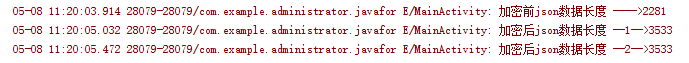 Log.e("MainActivity","加密後json數據長度 --2-->"+encryStr.length());