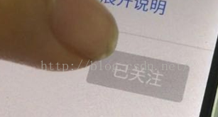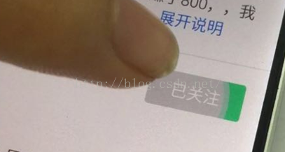 所以還是沒有知乎那麼行雲流水,所以我們是少了什麼嗎。這時候想起來了,之前在RevealFrameLayout的drawChild裡有一個判斷條件,當時我們不知道它的邏輯是干什麼的,現在看來。那部分邏輯就是處理這個的,畫子控件的時候,要畫兩個,FollowTextView和UnFollowTextView,要隨圓形刷出的控件我們采用裁剪畫布的方式慢慢畫出。那作為背景的另一個控件就不需要慢慢畫出,只要完全畫出來就行了。所以,猜想這裡這個判斷條件就是判斷當前控件是不是要隨圓形刷出的控件,如果不是,就直接畫出來就行了。所以修改代碼如下: