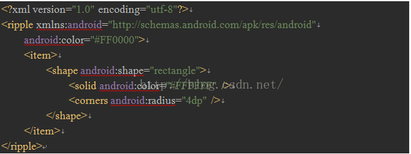 第一個color是波紋顏色,item裡面指定background正常的顏色,可以是一個shape,也可以是一個drawable,還可以是一個selector。