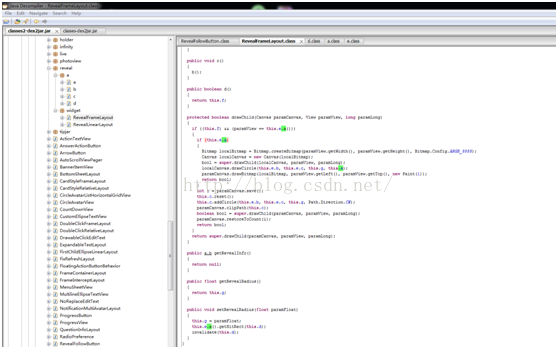 知乎用了multidex,所以會有兩個class文件,都拖出來放在dex2jar裡反編譯一下,就能生成兩個jar包了,把jar包放在GUI裡看一下,就能看到代碼了,雖然代碼被混淆過,但是基本邏輯還是能看出來的。